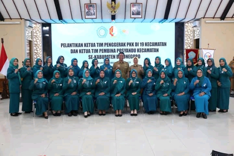 JATIMPOS.CO/BOJONEGORO - Sebanyak 19 Ketua Tim Penggerak PKK Kecamatan dan 28 Ketua Tim Pembina Posyandu Kecamatan se-Kabupaten Bojonegoro resmi dilantik, Senin (16/6/2025), di Ruang Angling Dharma Pemkab Bojonegoro. Pelantikan ini dihadiri langsung oleh Bupati Bojonegoro Setyo Wahono, Wakil Bupati Nurul Azizah, Pj Sekda Andik Sudjarwo, serta seluruh camat se-Kabupaten Bojonegoro.