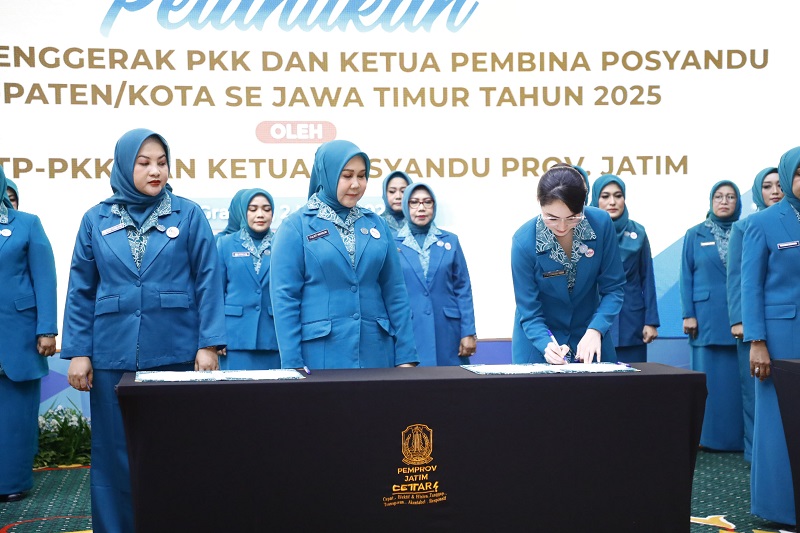 JATIMPOS.CO/JOMBANG - Yuliati Nugrahani Warsubi resmi dilantik menjadi Ketua Tim Penggerak (TP) PKK Kabupaten Jombang sekaligus Ketua Pembina Posyandu Kabupaten Jombang periode 2025-2030 bersama dengan Ketua TP PKK kabupaten/kota se Jawa Timur. Pelantikan dilakukan oleh Ketua TP PKK Jawa Timur, Arumi Bachsin, pada Minggu (02/03/2025) di gedung Grahadi, Surabaya.