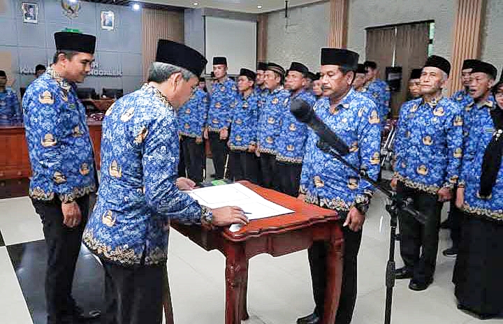 JATIMPOS.CO/TRENGGALEK - Sekda Trenggalek, Drs. Edy Soepriyanto selaku Ketua Dewan Pengurus KORPRI Kabupaten Trenggalek, kukuhkan Pengurus Unit Perangkat Daerah Kabupaten Trenggalek periode 2025-2030 di Gedung Bawarasa.