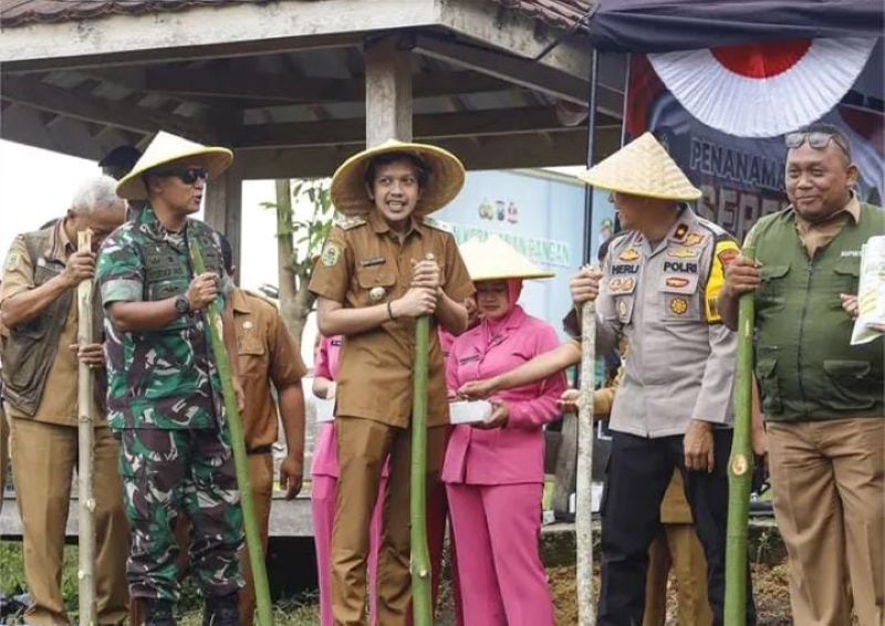 JATIMPOS.CO/KABUPATEN MADIUN - Polres Madiun bersama Forkopimda Kabupaten Madiun melakukan penanaman jagung serentak satu juta hektar di Perumahan Marison 2, Desa Pilangrejo, Kecamatan Wungu, Kabupaten Madiun, Selasa (21/1/2025).