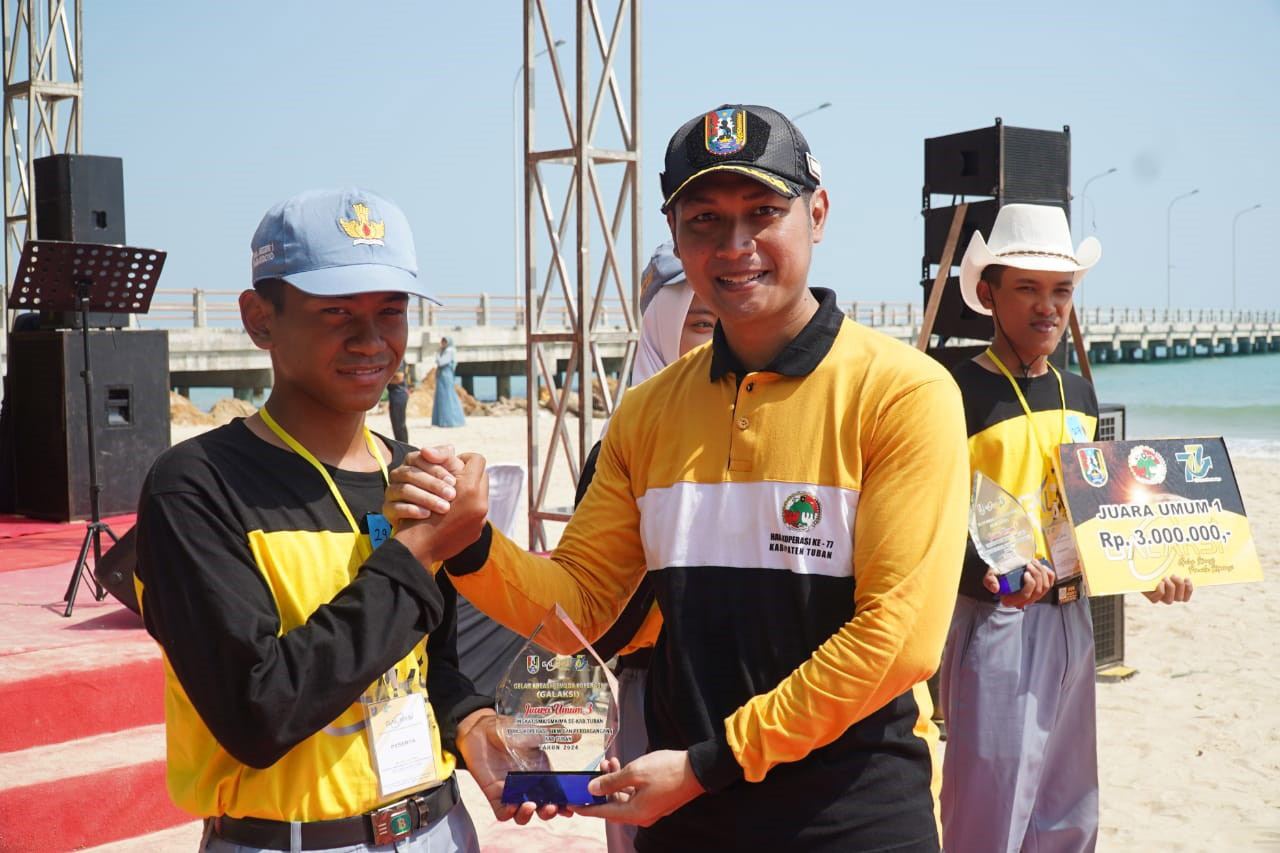 JATIMPOS.CO/TUBAN - Bupati Tuban, Aditya Halindra Faridzky menyerahkan piagam perhargaan kepada Juara Umum Gelar Kreasi Pemuda Koperasi (Galaksi) tahun 2024. Pun juga menyerahkan penghargaan kepada Koperasi Berprestasi, Koperasi Sehat, dan Tokoh Inspiratif Koperasi.