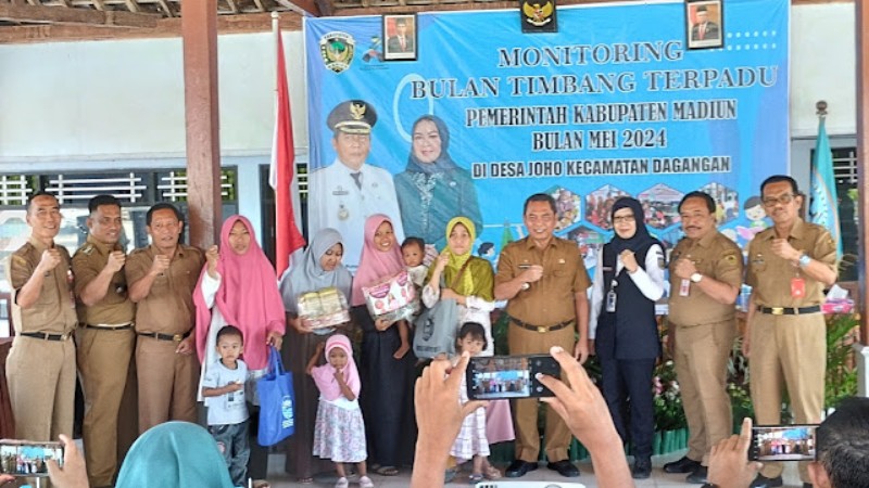 JATIMPOS.CO/KABUPATEN MADIUN - Pj Bupati Madiun Tontro Pahlawanto melakukan monitoring dan evaluasi (Monev) bulan timbang terpadu pada bulan Mei 2024 di Desa Joho, Kecamatan Dagangan, Kabupaten Madiun, Selasa (7/5/2024).
