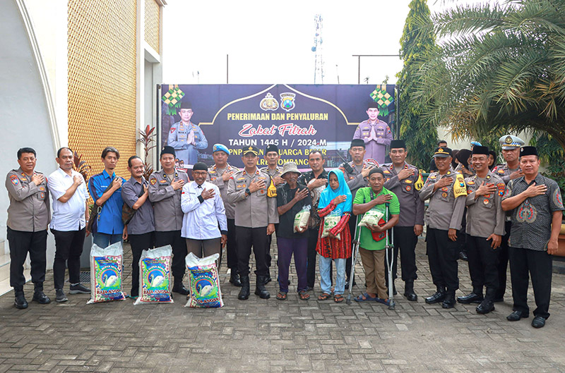 JATIMPOS.CO/JOMBANG - Polres Jombang bagikan 348 paket zakat dengan total 4.499 Kg beras ke masyarakat. Ratusan paket zakat fitrah ini terkumpul dari 866 personel Polri dan ASN Polres Jombang.