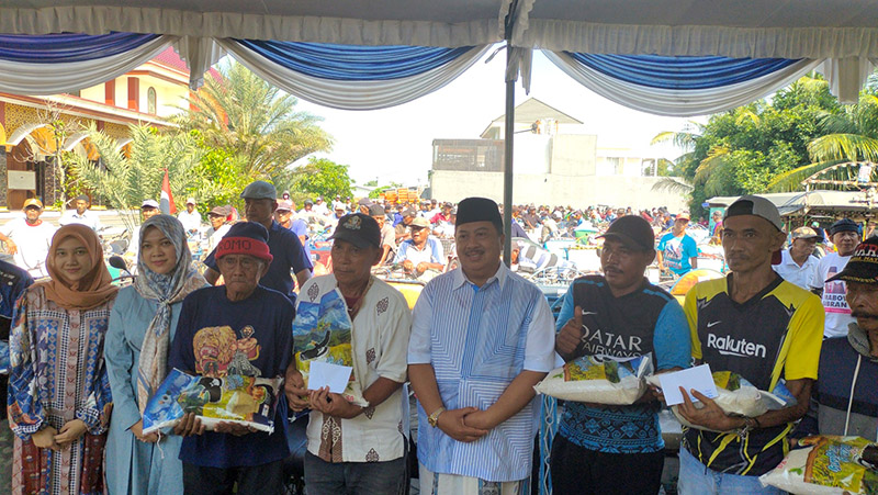 JATIMPOS.CO/JOMBANG - Kepala Desa Mojokrapak yang juga pengusaha pemotongan ayam, H. Warsubi membagikan zakat maal kepada ribuan tukang becak di Kabupaten Jombang, dan ratusan tukang becak asal kabupaten sekitar Nganjuk, Mojokerto maupun Lamongan. Zakat maal yang dibagikan berupa 5 Kilogram Beras dan uang sebesar Rp 100 Ribu, pada Sabtu (6/4/2024).