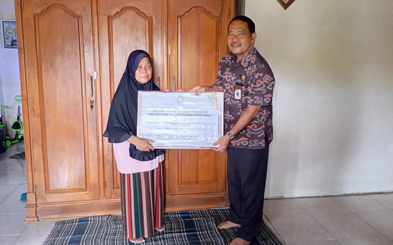 JATIMPOS.CO/TUBAN - Komisi Pemilihan Umum (KPU) Kabupaten Tuban menyerahkan santunan kepada keluarga Almarhum Rastam anggota Linmas asal Desa Sidohasri, Kecamatan Kenduruan. Pasalnya linmas tersebut mengalami kecelakaan lalu lintas seusai melakukan pengamanan pelaksanaan Pemilu 2024 yang lalu hingga mengaibatkan hilangnya nyawa.