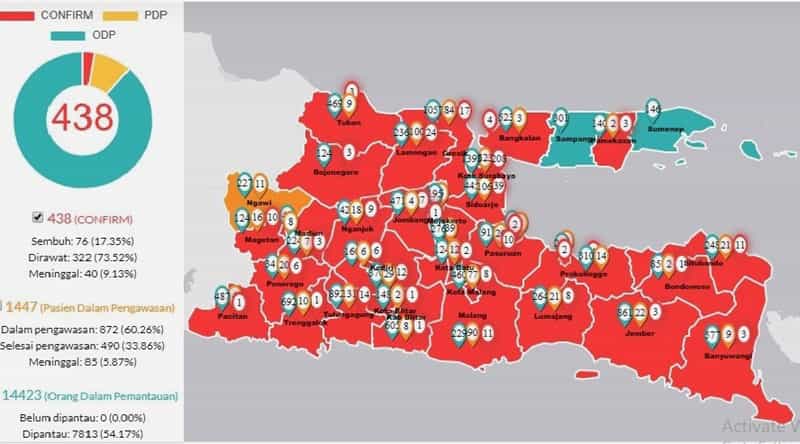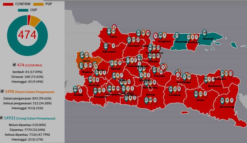 JATIMPOS.CO//SURABAYA-Update data kasus Covid-19, kemarin (13/4) di Jawa Timur menunjukkan hanya tiga Kabupaten di Jatim yang belum zona merah atau belum confirm positif coronavirus. Masing-masing : Kabupaten Sumenep, Kabupaten Sampang dan Kabupaten Ngawi.