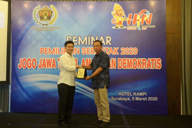 JATIMPOS.CO//SURABAYA- Wakil Gubernur Jatim Emil Elestianto Dardak menjadi pembicara pada Seminar Pilkada Serentak 2020 yang diselenggarakan PWI Jatim di Kampi Hotel, Kamis (5/3). Seminar dengan tema, “Jogo Jawa Timur, Aman dan Demokratis” itu Wagub menceritakan kiat dan motivasi calon kepala daerah yang maju pada Pilkada mulai dari niatan hingga proses pelaksanaan.