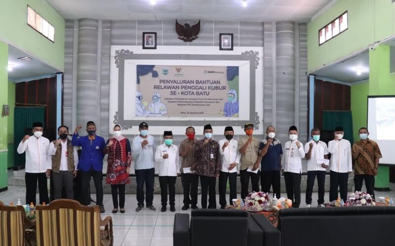 JATIMPOS.CO/KOTA BATU - Relawan penggali kubur se-Kota Batu menerima bantuan dari Badan Amil Zakat Nasional (Baznas) Kota Batu di Graha Wangsa Kota Batu, Rabu (25/8/2021).