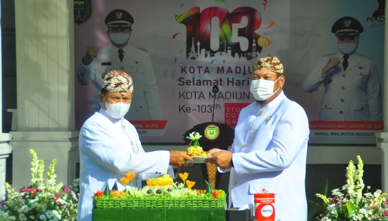 JATIMPOS.CO/KOTA MADIUN - Mengingat masih adanya wabah pandemi Covid - 19 dan adanya lonjakan kasus Covid - 19 di beberapa wilayah akhir - akhir ini, puncak peringatan Hari Jadi Kota Madiun ke - 103 Tahun yang biasa diperingati setiap tanggal 20 Juni dilaksanakan secara sederhana.