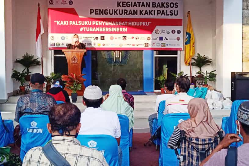 JATIMPOS.CO/TUBAN - Universitas PGRI Ronggolawe (UNIROW) Tuban melakukan pengukuran kaki palsu kepada 25 orang penyandang disabilitas. Kegiatan ini bekerjasama dengan Tuban Humanity, Ruang Pasien Surabaya, dan Yayasan Rengganis Jember, di Unirow, Senin (22/02).