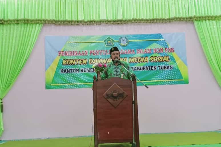 JATIMPOS.CO/TUBAN – Kantor Kementerian Agama (Kemenag) Tuban melalui Kasubag TU, Moh. Qosim mendorong para penyuluh agama mengembangkan konten dakwah di dunia digital. Selain itu mengajak seluruh jajarannya bijak dalam bermedia sosial dan menscreening sumber berita di tengah banjirnya informasi di tengah dunia digital.