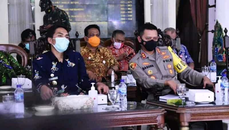 JATIMPOS.CO/KABUPATEN MADIUN - Bupati Madiun, H. Ahmad Dawami bersama Forkopimda dan pimpinan OPD terkait mengikuti Rapat Koordinasi (Rakor) Penanganan Covid – 19 dengan Gubernur Jawa Timur, Khofifah Indar Parawansa secara virtual dari Pendopo Muda Graha Kabupaten Madiun, Jum'at (8/1/2021).