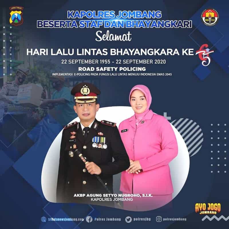 Portal Berita Jawa Timur KEPALA Kepolisian Resort (Kapolres) Jombang Beserta Staf dan Bhayangkari Mengucapkan Selamat Hari Lalu Lintas Bhayangkara ke-65 (22 September 1955 – 22 September 2020).