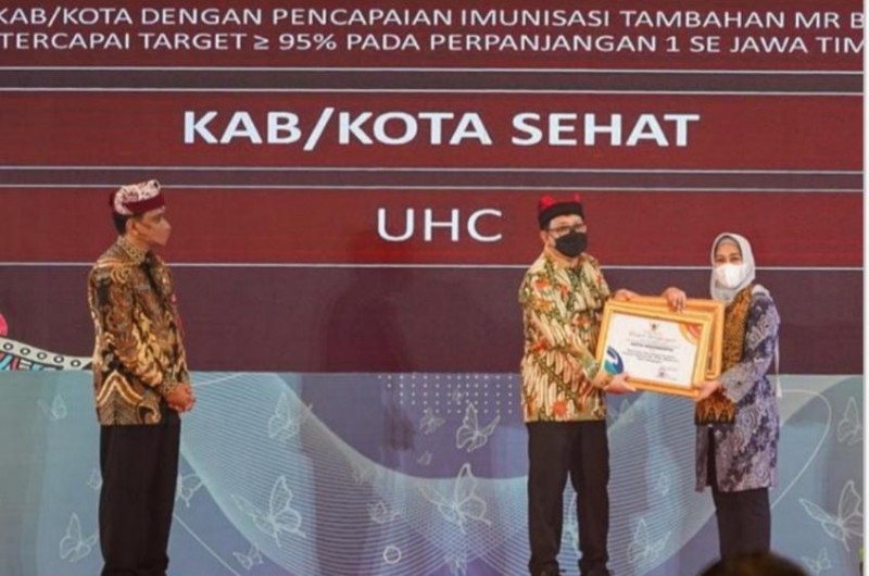 Tiga penghargaan yang berhasil diraih Kota Mojokerto yakni pencapaian imunisasi tambahan MR (Bian) minimal 95 persen pada perpanjangan 1, telah lolos verifikasi penilaian kabupaten/kota sehat Provinsi Jawa Timur tahun 2022 dan sebagai kabupaten/kota di Jawa Timur yang telah mencapai Universal Health Coverage (UHC).