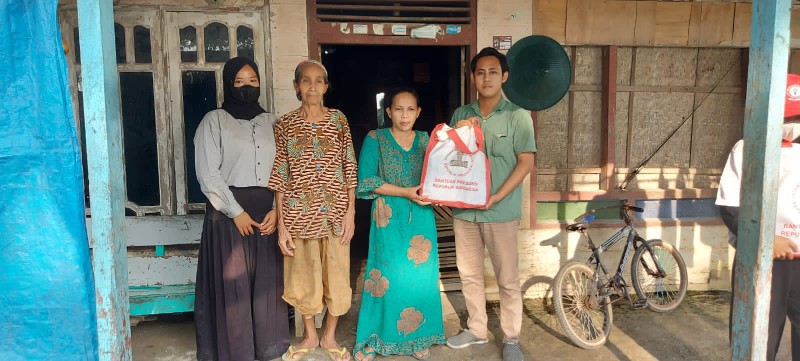 Sebanyak 55 paket sembako berisi 5kg beras, 1 liter minyak goreng, 1kg gula, sarimi, teh, dan biskuit, dibagikan oleh para relawan kepada warga yang membutuhkan.