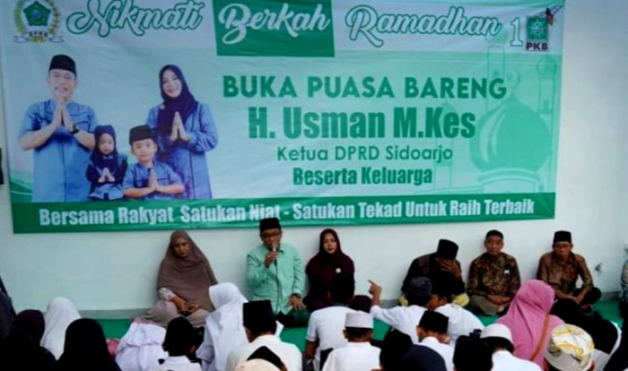 JATIMPOS.CO/SIDOARJO - Gelar buka puasa bersama (Bukber) puluhan anak yatim beserta masyarakat setempat pada Senin (3/4) malam, Ketua DPRD Sidoarjo H. Usman ucap syukur kepada Allah SWT.