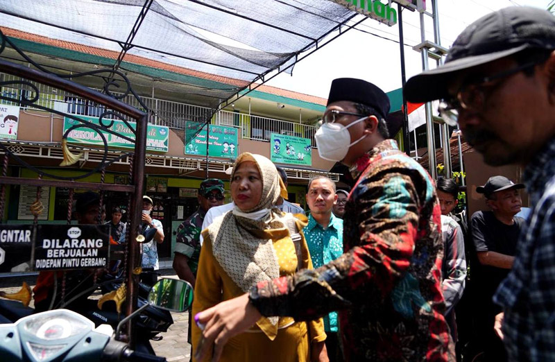 Disamping itu Gus Muhdlor juga menyempatkan melihat kondisi SDN 1 Wage. Ia juga mendengarkan aspirasi para guru sekolah tersebut.