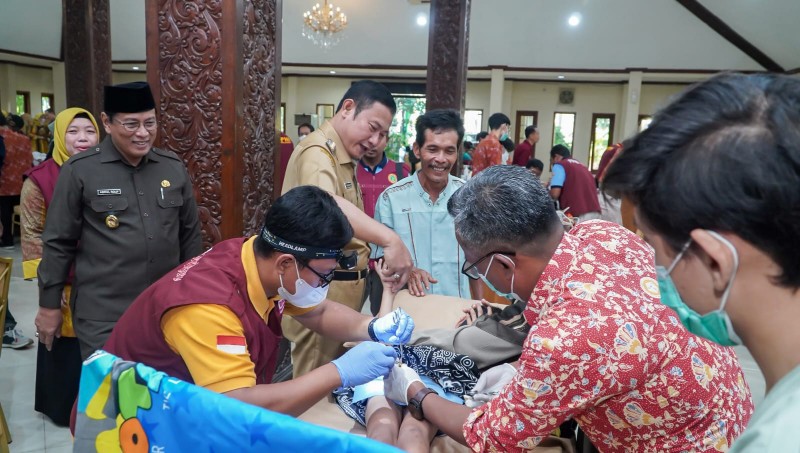 JATIMPOS.CO/LAMONGAN - Pemerintah Kabupaten Lamongan gelar khitan massal gratis yang di ikuti 103 anak di Pendopo Lokatantra Kabupaten Lamongan. Khitan massal yang kedua kalinya digelar dalam rangka hari jadi Lamongan disambut antusiasme anak-anak Lamongan dari usia 5-14 tahun dari berbagai wilayah Lamongan. Selasa (27/06/2023).