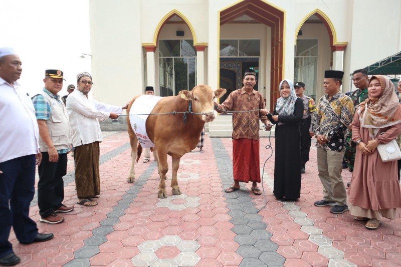 Penyerahan secara simbolis hewan kurban menjelang Idul Adha 1444 Hijriah/Tahun 2023 itu, juga turut dihadiri Sekretaris Daerah Kabupaten Mojokerto Teguh Gunarko, Kepala Bagian Kesra Nunuk Djatmiko, Ketua Baznas Kabupaten Mojokerto KH Sholihin, dan jajaran Forkopimca Bangsal dan Mojosari, Rabu (28/6/2023) sore.