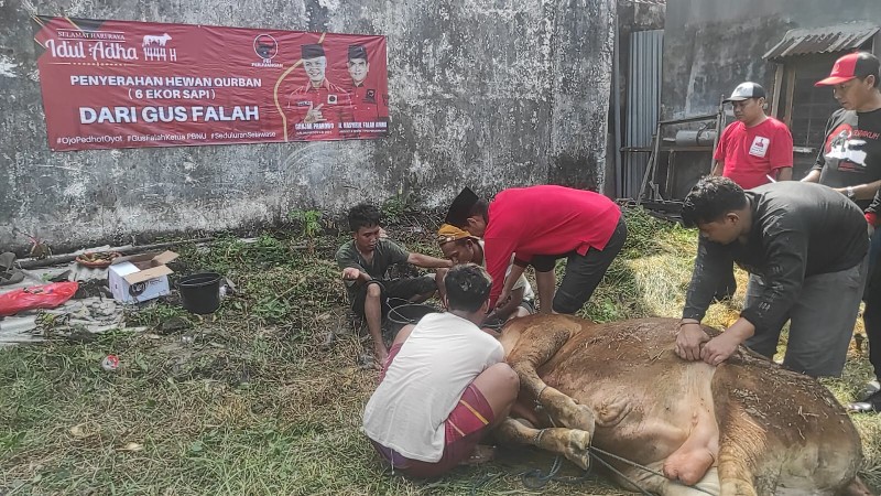 "Untuk niat kurbannya yang satu ekor sapi dari DPD kita peruntukkan untuk rekan-rekan Satgas yang belum menjalankan sunnah kurban selama ini dan yang dari Gus Falah diperuntukkan untuk jajaran pengurus DPC PAC yang selama ini belum kurban," kata Husen, Sabtu (01/07/2023).
