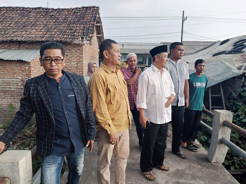 Usai mengikuti istighosah anggota DPRD Provinsi Jatim, M. Hidayat (Gerindra) dan anggota DPRD Kabupaten Mojokerto, Pitung Hariyono (PKB) melihat langsung kondisi bibir kali Modongan, serta lapak-lapak PKL yang berdiri di atas sempadan kali.