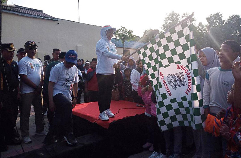 JATIMPOS.CO/KOTA MOJOKERTO – Wali Kota Mojokerto Hj. Ika Puspitasari melepas jalan sehat atau jalan santai dan mengajak masyarakat mendukung program dari Forum Kota Mojokerto Sehat (FKMS) 'Lisa Berdasih’ kepanjangan dari Lihat sampah ambil, bersih saat datang, bersih saat pergi.