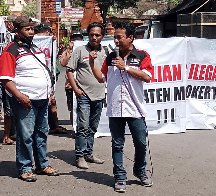 Ungkapan senada juga disampaikan oleh Saipan Wakil Presiden LSM LIRA Mojokerto Raya dalam orasinya mengatakan, sebelum aksi unjuk rasa hari ini, LSM LIRA Mojokerto, terima laporan warga atas keberadaan galian c yang meresahkan. Setelah ditindak lanjuti berkirim surat pada intansi terkait dan upaya penyelesaian mediasi di Polres Mojokerto Kota dan Kantor Kecamatan Jetis namun tidak ada titik temu, pengusaha mbulet.