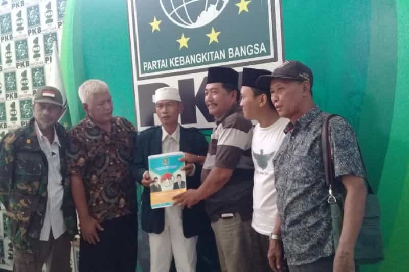Moh. Amin Ranuwiharjo Pengasuh Ponpes Roudhotul Ulum Desa Klinterejo Kecamatan Sooko Kabupaten Mojokerto mengembalikan formulir pendaftaran Penjaringan dikantor DPC PKB, jalan Raya Jabon Kecamatan Mojoanyar Kabupaten Mojokerto, Sabtu (28/2 2020).