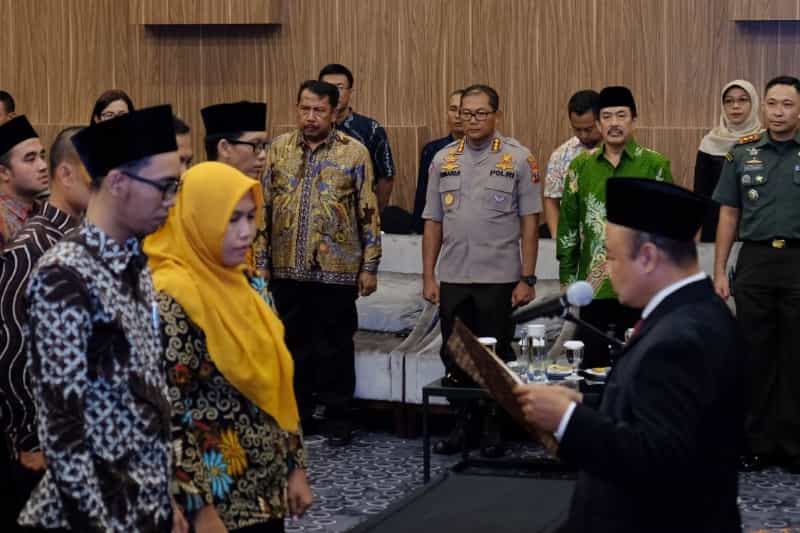 JATIMPOS.CO/SIDOARJO - Komisi Pemilihan Umum (KPU) Kabupaten Sidoarjo melakukan pelantikan 90 anggota Panitia Pemilihan Kecamatan (PPK) dari 18 Kecamatan yang ada di Hotel Aston KNV Sidoarjo, Sabtu malam (29/2/2020).
