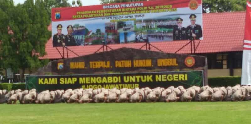 Prosesi upacara penutupan, pelantikan, dan pengambilan sumpah pendidikan pembentukan Bintara Polri Tahun Anggaran 2019/2020 itu dilakukan di SPN Polda Jatim, Kabupaten Mojokerto.