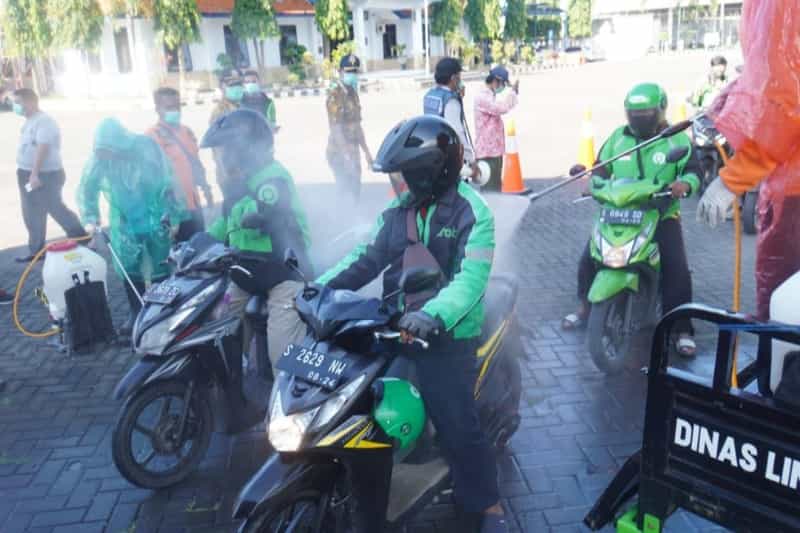 Sedikitnya ada 252 driver ojek online roda dua, 55 driver ojek online roda empat dan enam bus sekolah, yang mengikuti penyemprotan secara menyeluruh.