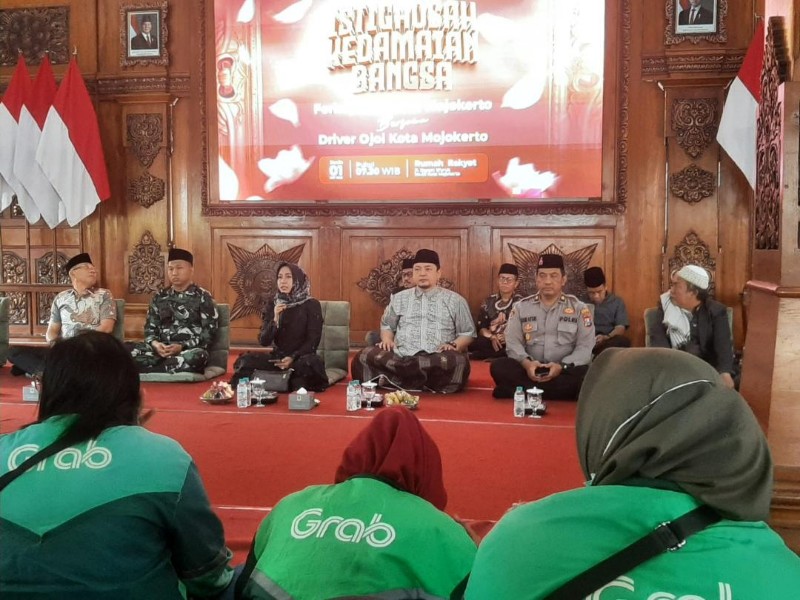 Acara yang berlangsung khidmat ini dipimpin oleh KH. Hamid tokoh agama dari Kedungkwali. Ratusan ojol yang hadir tampak mengenakan atribut khas mereka, mengikuti doa bersama dengan penuh kekhusyukan dan harapan akan situasi yang aman serta damai di Indonesia, khususnya Kota Mojokerto.
