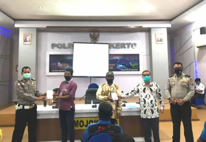 JATIMPOS.CO // MOJOKERTO.- Polres Mojokerto yang bekerja sama dengan pemerintah dan Bank BRI, melaksanakan Program peduli Keselamatan 2020 berupa kegiatan edukasi etika berlalulintas dan keselamatan di jalan di Aula Polres Mojokerto Jl. Gajah Mada No 99 Mojosari, Sabtu, (9/5/2020)