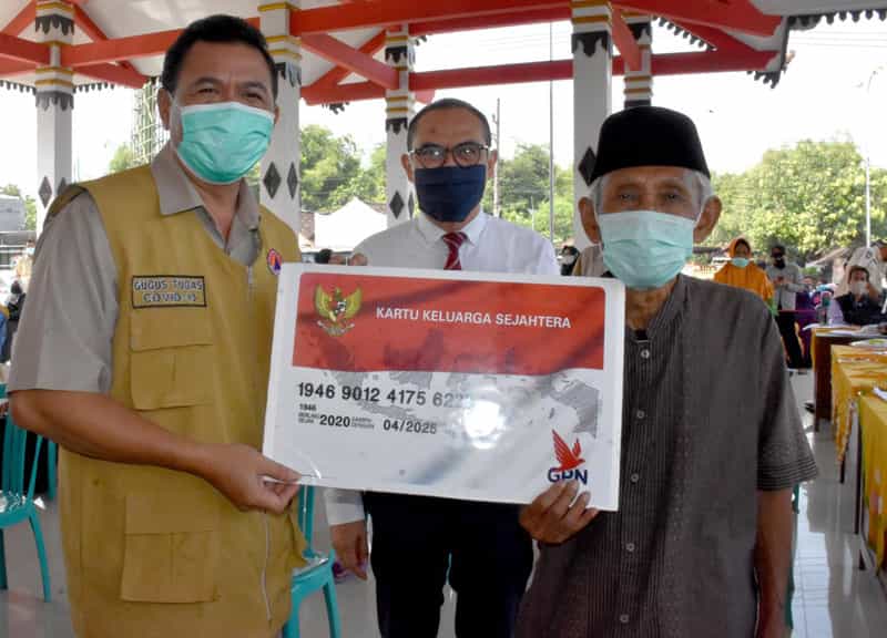 Kegiatan penyaluran KKS turut dihadiri Assiten, Kepala BNI Cabang Mojokerto Rudy Indrianto, OPD terkait serta masyarakat penerima bantuan. (din)