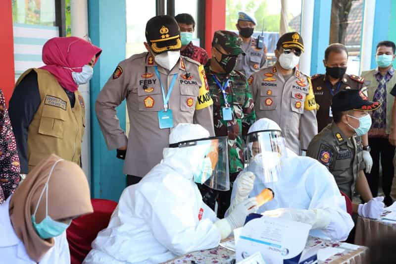 Kapolres Mojoekrto AKBP Feby DP Hutagalung mengatakan, bahwa benar hari ini telah dilakukan kegiatan rapid test on the spot oleh pemerintah daerah Kab. Mojokerto di dua lokasi Pasar Brangkal dan Pasar Raya Kemlagi sebagai langkah pencegahan dengan melakukan skrining awal mendeteksi anti bodi serta tindakan pencegahan penyebaran covid-19 di Kab. Mojokerto.