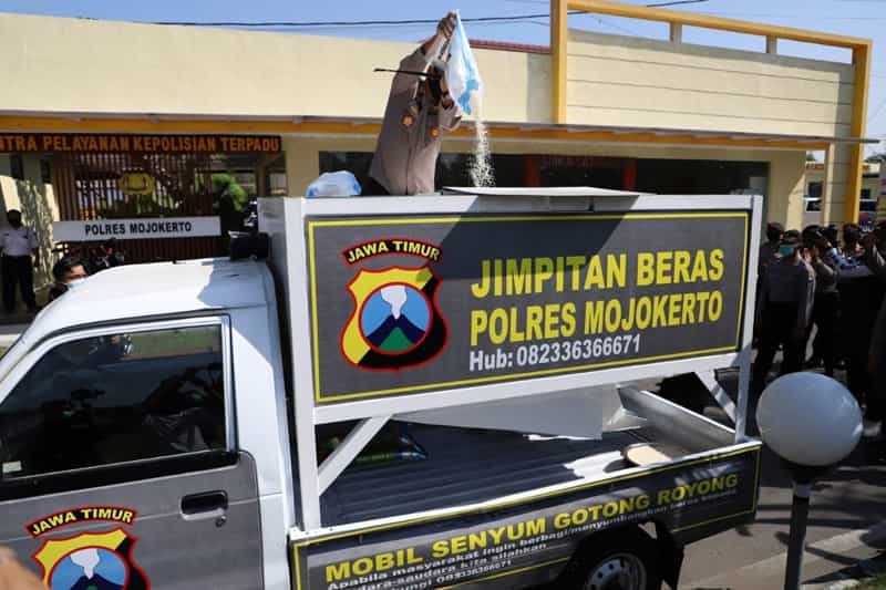 ”Mobil Jimpitan beras ini setiap hari akan beroperasional dari kampung ke kampung di Wilayah Kabupaten Mojokerto dan siap menerima beras ataupun bantuan lainya dari masyarakat yang mau untuk menyisihkan sebagian rejekinya untuk meringankan beban saudara-saudara kita yang terdampak covid-19,” ujar Kapolres.