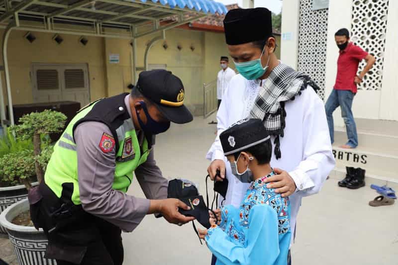 Dalam kesempatan itu Kapolres Mojokerto, mensosialisasikan disiplin penerapan protokol kesehatan kepada jamaah sholat jumat untuk penanganan serta pencegahan penyebaran Covid-19. Disiplin penerapan protokol kesehatan diyakini sebagai vaksin paling ampuh untuk memutus mata rantai penyebaran Covid-19. ”Memasuki era new normal life kita budayakan tetap disiplin penerapan protokol kesehatan,“ ujarnya.