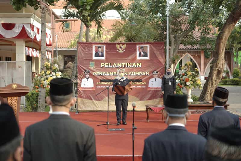JATIMPOS.CO/KOTA MOJOKERTO - Sebanyak 31 orang pejabat Pemkot Mojokerto, terdiri dari 12 orang pejabat administrator dan 19 orang pejabat pengawas dilantik dan diambil sumpahnya oleh Wali Kota Mojokerto, Ika Puspitasari di Rumah Rakyat, Jl. Hayam Wuruk 50, Jumat (24/7/2020).