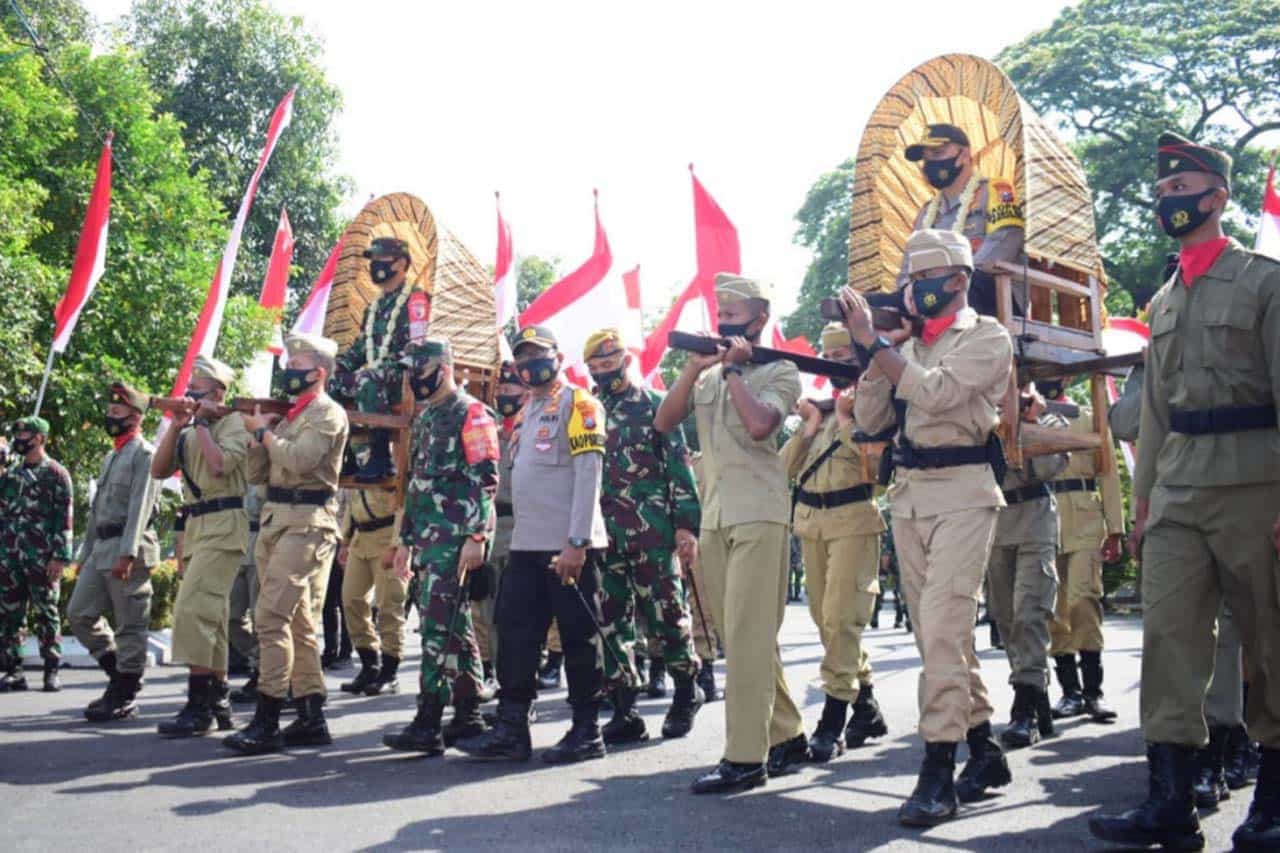 Gubernur Jawa Timur Khofifah Indar Parawansa didampingi Pangdam V/Brawijaya Mayjend TNI Widodo Iryansyah, dan Kapolda Jatim Irjen Pol Dr Mohammad Fadil Imran mencanangkan peran TNI-Polri dalam penanganan Covid-19.