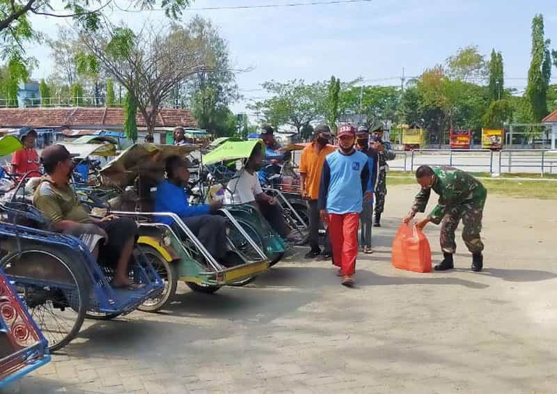 Dalam kegiatan tersebut yang dihadiri langsung oleh Komandan Kodim 0812/Lamongan Letkol Inf Sidik Wiyono, S.H., M.Tr.Han dengan memberian 100 paket sembako kepada Tukang becak. Sabtu (26/9/2020).