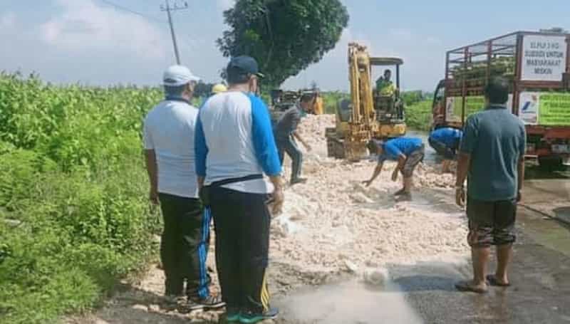 "Hari ini kita lakukan pekerjaan penutupan lubang jalan bekas banjir di Desa Pucangro. Untuk sementara hanya bisa dilakukan di beberapa titik yang tidak tergenang," ungkap Kepala Dinas PU Bina Marga, Eko Agus Triandono, Jum'at (22/01/2021),