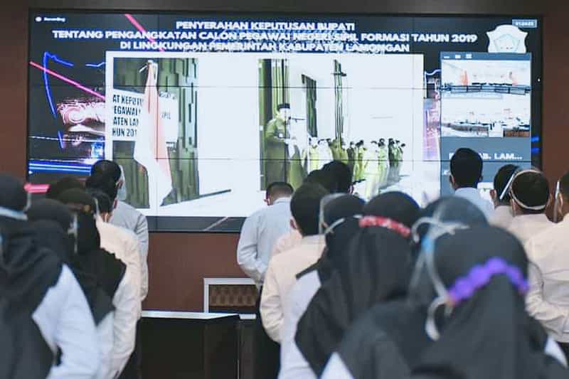 JATIMPOS.CO/LAMONGAN – Sebanyak 477 CPNS Tahun Formasi 2019 akhirnya menerima Surat Keputusan (SK) bupati tentang pengangkatan CPNS. Penyerahan SK dilakukan secara vitual di tiga tempat yakni Ruang Pertemuan Gajah Mada, Airlangga, dan Command Center.
