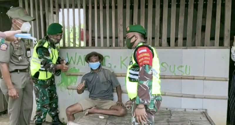 Tiga pilar Kecamatan Laren tersebut melaksanakan pembagian masker di simpang 5 pasar Laren serta warung kopi dan lokasi strategis lain yang didapat masyarakat tidak memakai masker.
