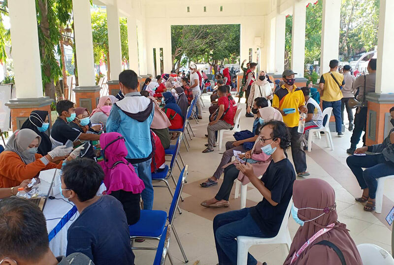 Namun, masyarakat yang datang tiga kali lipat dari jumlah target yang disediakan. Masyarakat yang datang hari ini tak hanya berasal dari Lamongan saja. Beberapa warga juga diketahui datang dari daerah lain, seperti, Surabaya, Tuban, Gresik dan Bojonegoro.