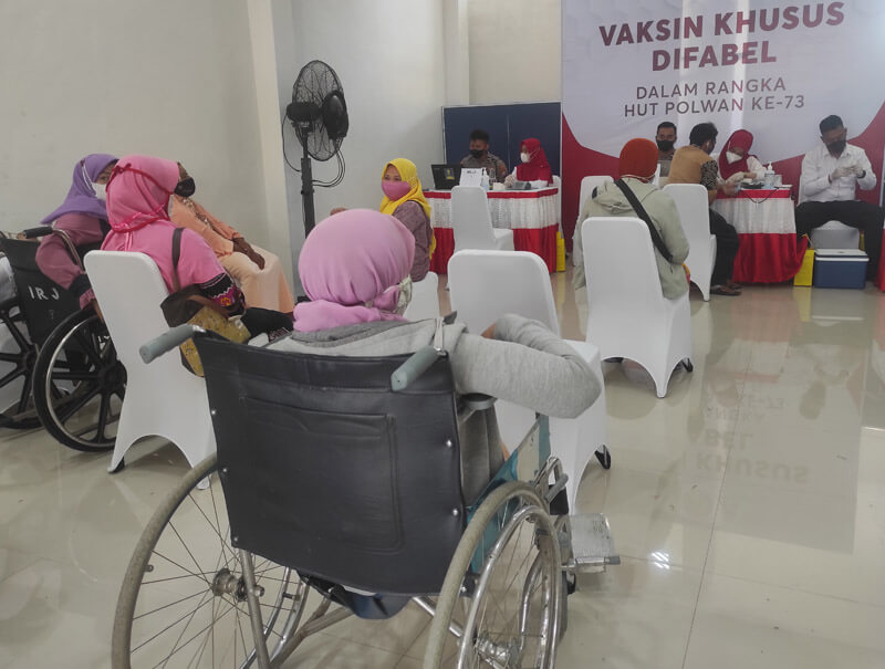 "Dalam rangka HUT Polwan ke-73 kali ini kami mengadakan kegiatan vaksinasi dengan sasaran khusus disabilitas, 37 orang untuk vaksin kedua dan 10 orang untuk vaksin pertama," kata AKP Yanti dilokasi acara, Rabu (01/09/2021).