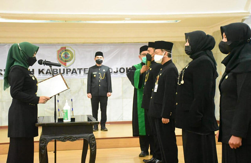Pelantikan dilakukan secara simbolis di ruang Satya Bina Karya Kabupaten Mojokerto, Jumat (3/9) pagi. Empat orang pejabat yang dilantik adalah, Zainul Muhtarom sebagai Dokter Ahli Utama pada RSUD Prof. dr. Soekandar (Gol IV c), Nailurrahman Adilla sebagai Perancang Peraturan Perundang-Undangan Ahli Pertama pada Bagian Hukum Setdakab (Gol III a), Karina Pearlaura sebagai Penata Ruang Ahli Pertama pada Bappeda (Gol III a), dan Uut Indria Riftyana sebagai Guru Ahli Pertama pada Dinas Pendidikan (Gol III a).