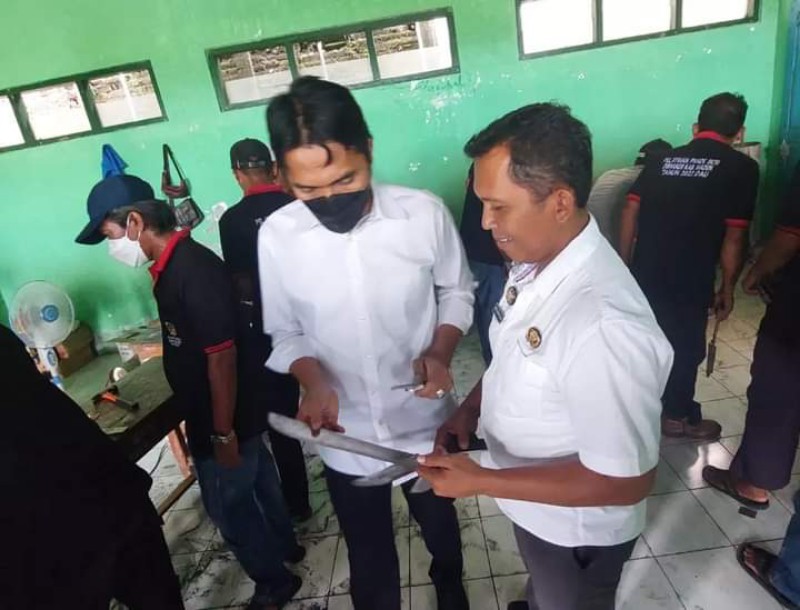 JATIMPOS.CO/KABUPATEN MADIUN - Pemerintah Kabupaten Madiun melalui Dinas Tenaga Kerja (Disnaker) Kabupaten Madiun menggelar pelatihan pande besi di Desa Sewulan, Kecamatan Dagangan, Kabupaten Madiun, Rabu (9/11/2022).