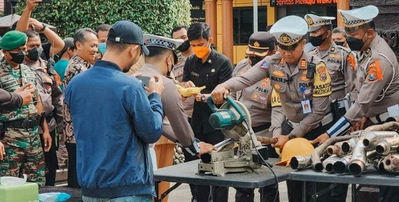 Polres Blitar Kota saat memusnahkan barang bukti knalpot.