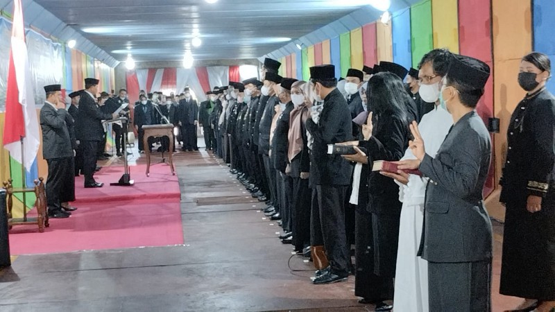 JATIMPOS.CO/KOTA MADIUN - Menjelang tahun baru 2023, Wali Kota Madiun, Maidi melantik sejumlah pejabat lingkup Pemkot Madiun di Lorong Curvet Box, Taman Sumber Wangi Kota Madiun, Jum'at (30/12/2022).