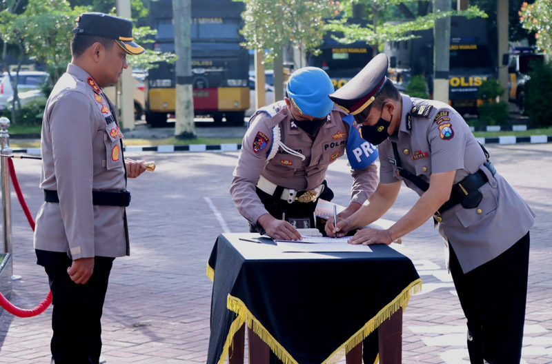 Pesan ini disampaikan AKBP Boy Jeckson saat memimpin serah terima jabatan (sertijab) Kasat Binmas Polres Nganjuk dari AKP Sudarwoco yang diganti oleh AKP Totok Heru Rudianto di lapangan apel Polres Nganjuk, Senin (9/1/2023).